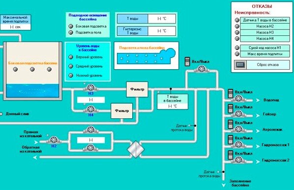 Диспетчерский компьютер. Подсистема управления оборудованием бассейна. Оборудование МЗТА |